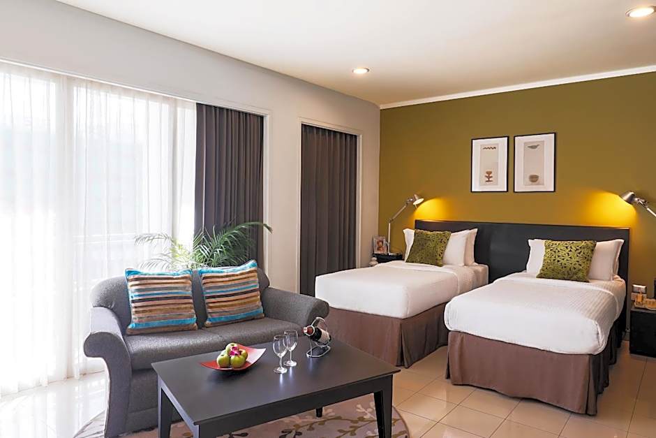 Offers a private balcony, a sofa seating area and an private bathroom.